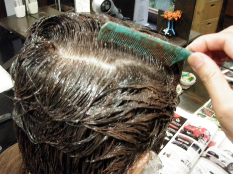 かなり敏感な場合は、頭皮保護をしてヘアマニキュアを塗る要領で頭皮につかないようにカラー剤を塗る。ヘアマニキュアは頭皮につくと落ちにくいので、同じ要領で塗っているのでその応用。自分で言うのも何ですが、頭皮ギリギリから塗る技術は得意分野。