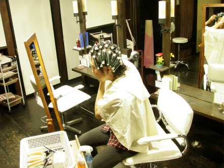 その後、なるべく髪の毛を取ってから、床の補修液を塗って行きますよ。