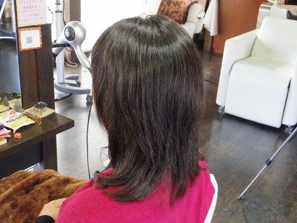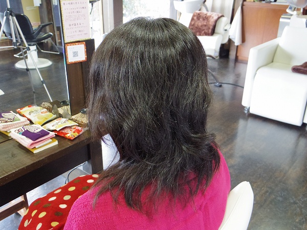 カールは多少出る程度のゆるいパーマ、予定通り。