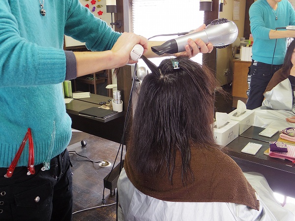 パーマ前の状態、営業終了後なので乱れていますが、