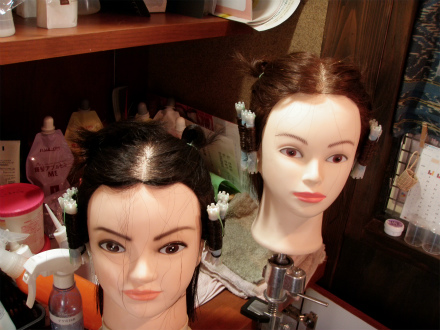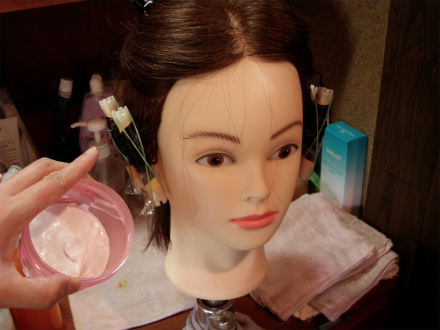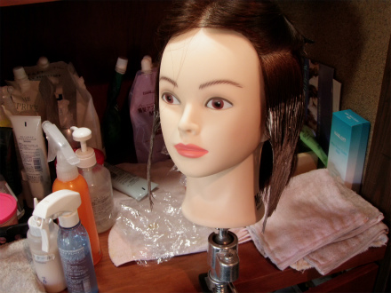 今回のサンプルは、「傷んだ髪に栄養を入れていく」薬剤というよりは、コレをつけると「ダメージから髪を保護」の薬剤。かなりの保護力で、カールの毛先などもパサつかないのだとか。効果的なら、やや値段はお高いが欲しいので、考えるよりも結果で検証をしてみることに。