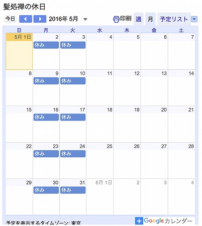 この髪処禅ブログの左側に休み予定が書いていますが、