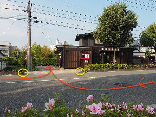 駐車場に入るときには黄色丸の場所にある縁石にご注意をっ。