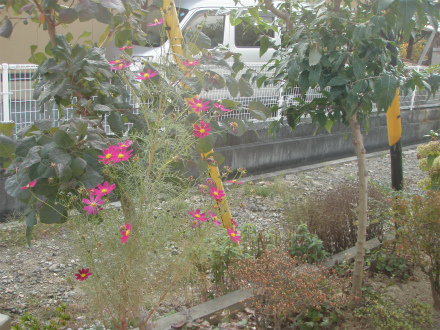 植えた覚えはないのですが、コスモスが咲いています。どこからか種が飛んできて、着地したのでしょうね。