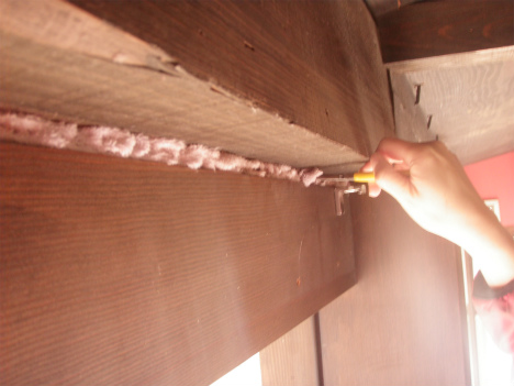 改装はしていますが、昔の一軒家なので機密性は低いのですよね。今までにも隙間には「隙間テープ」や「タオル」などをつめて隙間をふさいでいるのですが、また気になった場所がでてきたので、補修してみましたよ。