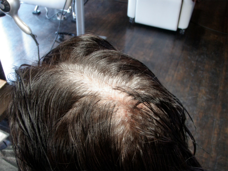 今回のお客様の髪の状態、白髪率は100パーセントに近く、今まではヘアカラーで染めていました。