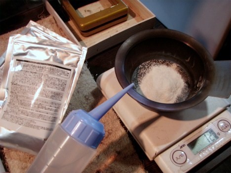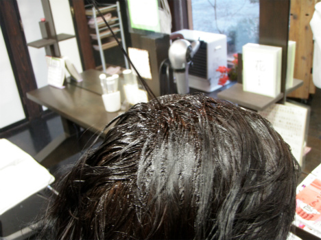 ハーブカラーをお湯と混ぜて塗っていくのです。