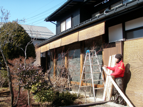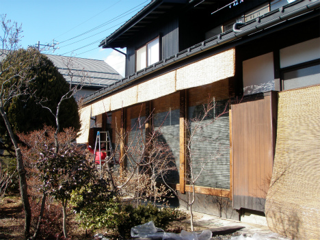 すだれの交換前はこんな感じで、日焼けによ色褪せが見えます。