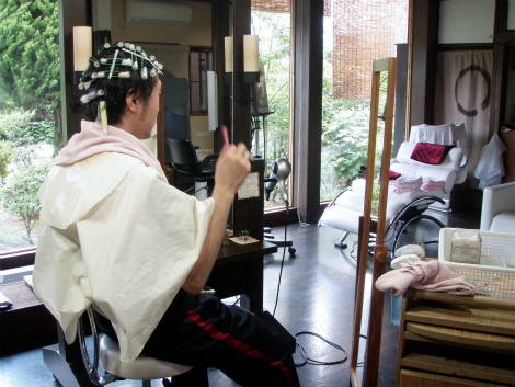 あえて、髪の保護剤を使用しないで、パーマ液だけで様子をみる。それでも仕上がりはバサバサしないでいい感じ。